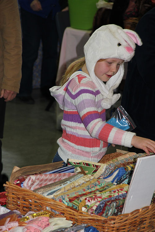 Young girl looking at fabric Fabric-a-brac Auckland 2014